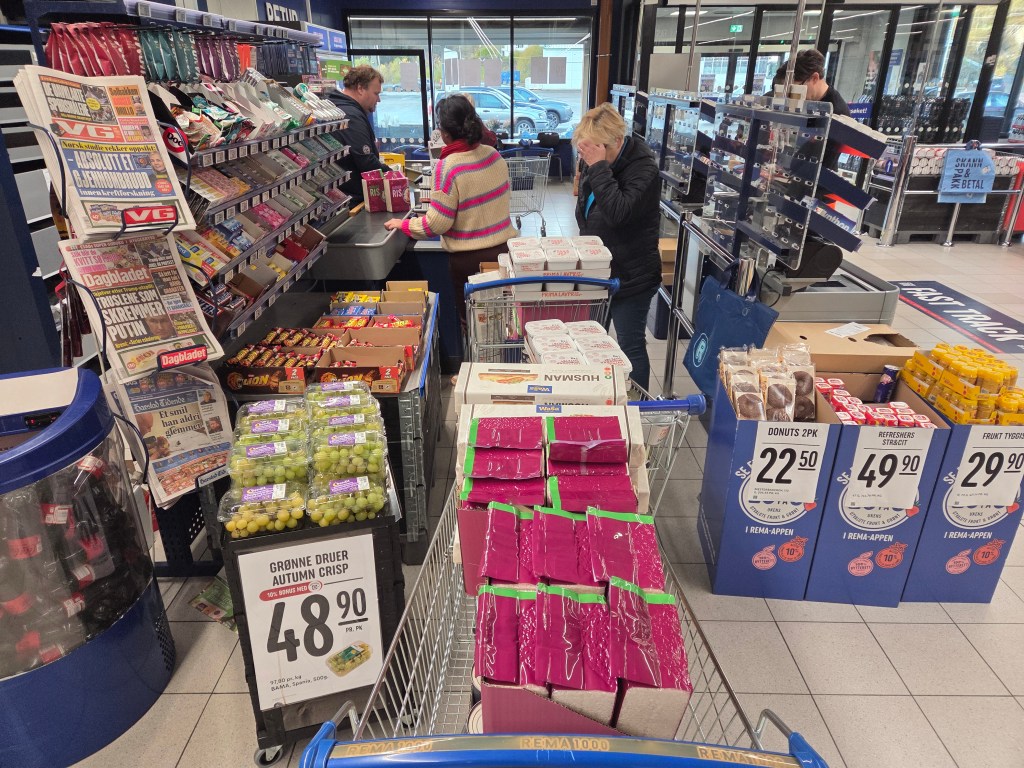 Ondanks het feit dat Noorwegen een rijk land is, groeit de groep mensen die moeite heeft om rond te komen. Dat zijn niet alleen vluchtelingen, maar ook Noren zelf, aldus de armoedebarometer van het Noorse Leger des Heils. Eén op de vijf Noren heeft behoefte aan steun, waaronder ook ouderen die de stijgende prijzen niet bij kunnen benen. Komende week hebben we in Harstad weer een voedseluitdeling en de levensmiddelen die we van grote leveranciers krijgen, vullen we als korps aan met conserven, pasta en brood. Ik kan me voorstellen, dat je even bleek om je neus wegtrekt als je die parade van karren ziet aankomen.