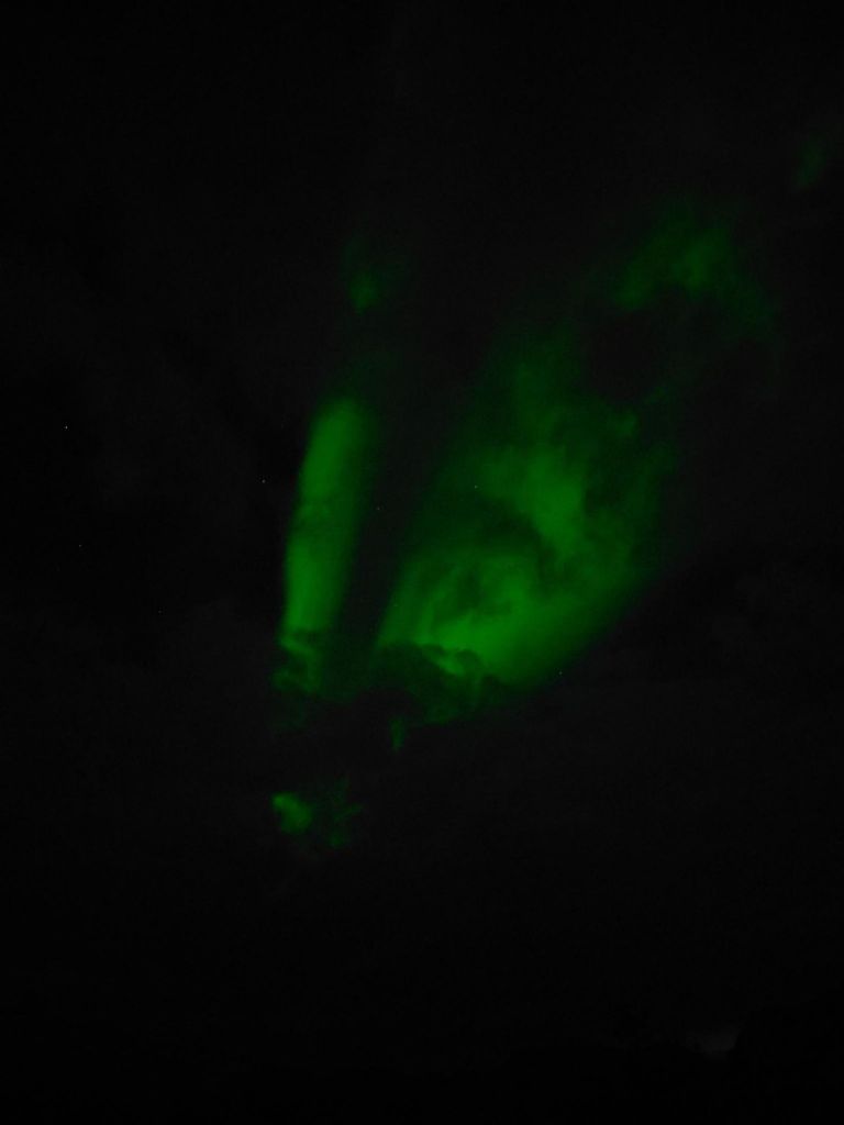 De dames starten de terugreis- die ook Marijes vakantie is – via de Lofoten. En daar is het raak: op Gimsøy – een vlak eilandje waar het pikkedonker is – is de bewolking af en toe open genoeg om het Noorderlicht te zien vlammen. En zien we daar in het licht van de maneschijn nou een eland grazen? Die kan dan ook van de bucketlist.