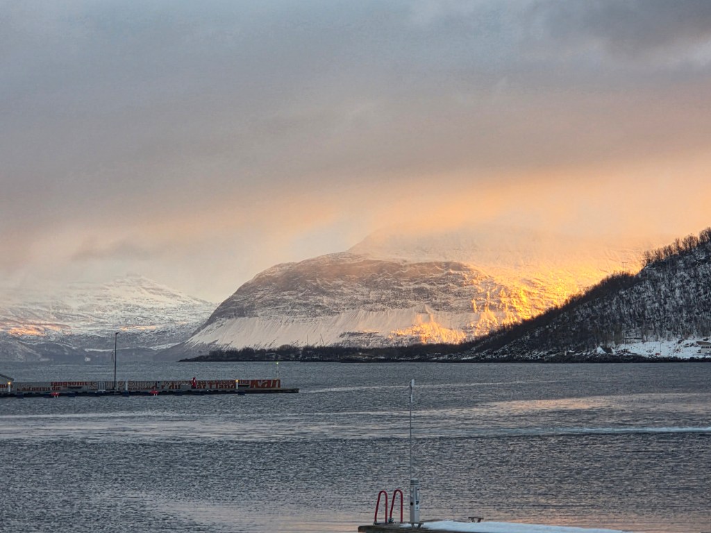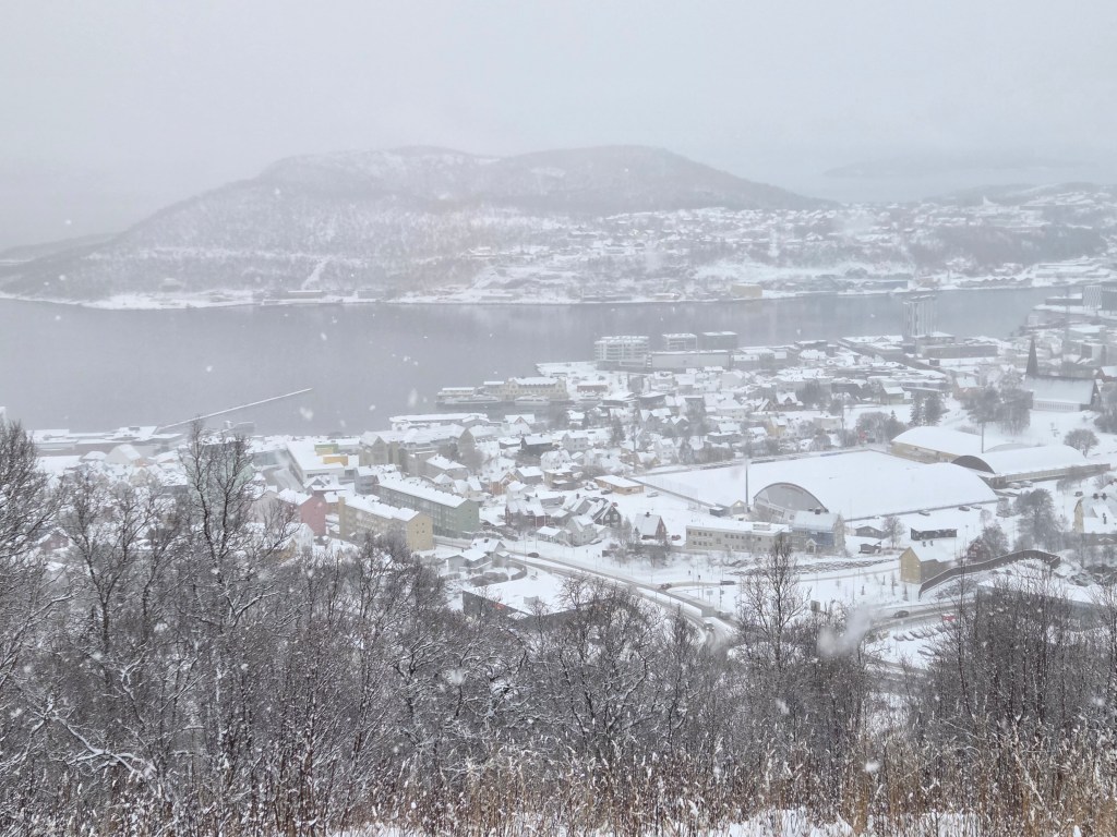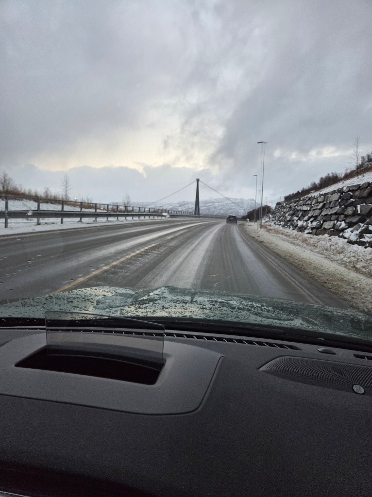 Overigens was de rit naar Narvik betoverend mooi over de vers besneeuwde wegen en kronkelend langs de fjorden.