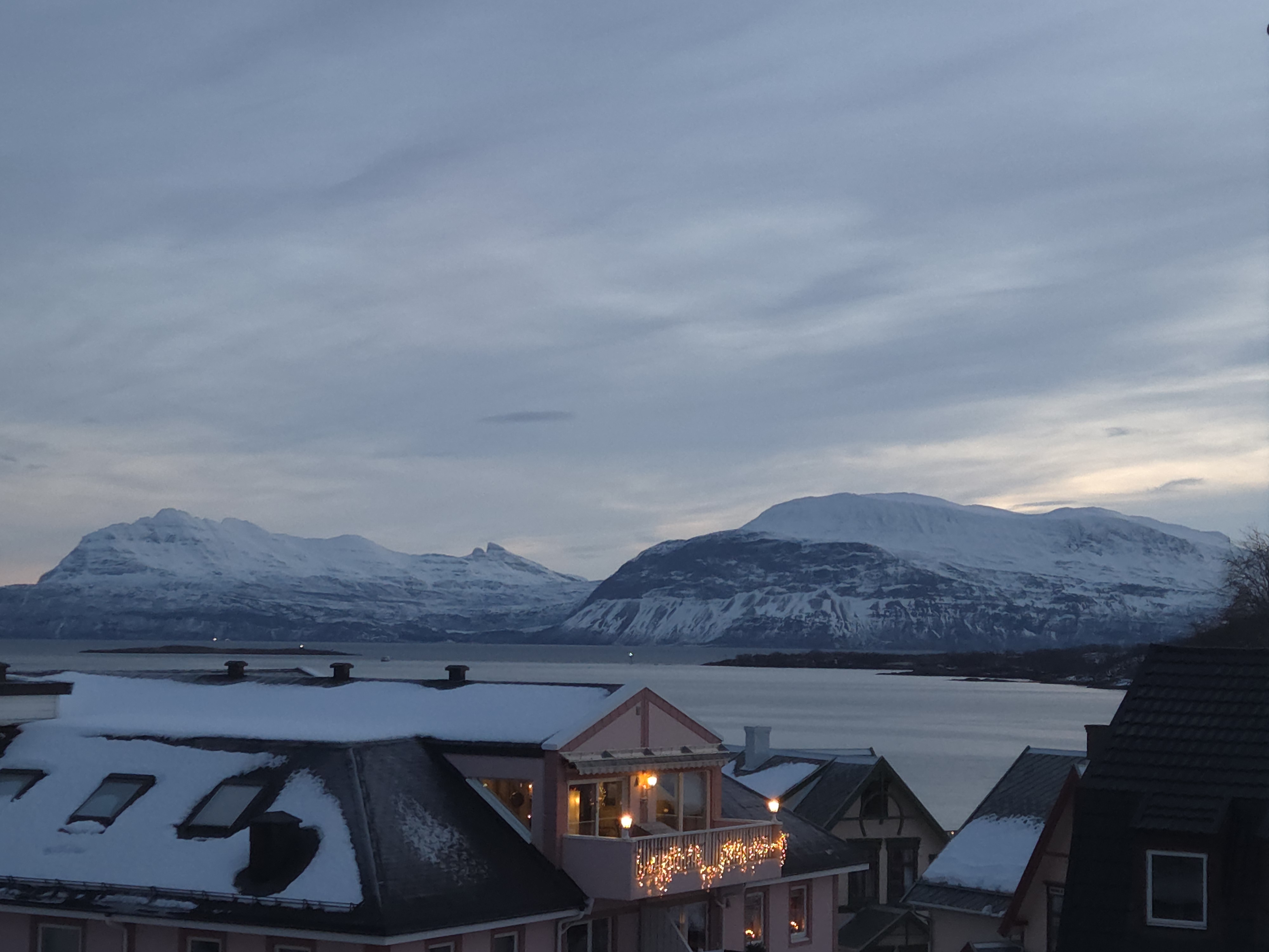 Ik begin steeds meer te begrijpen van de fascinatie met licht die ze hier hebben. We zitten inmiddels midden in de ‘morketid’ (donkere tijd, ook wel vertaald als ‘poolnacht’) en moeten het doen met anderhalf uur semilicht per dag, ook wel de blauwe periode genoemd. Die duurt tot minstens half januari.